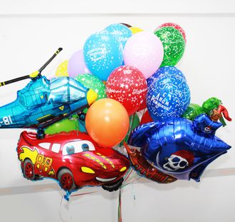 Набор из 12 гелиевых шаров, 12 шаров с рисунками и 4 фольгированных моделей.
