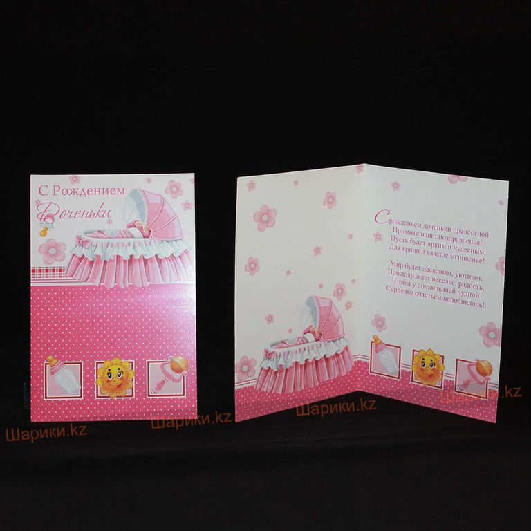 новинка Открытка "С рождением доченьки" 300 тг. В корзину Также рекомендуем:В корзинуСлед Девочка5 500 KZT В корзинуВ корзинуСердце НОВОРОЖДЕННАЯ ДЕВОЧКА1 700 KZT В корзинуВ корзинуУра девочка700 KZT В корзинуВ корзинуКоляска девочки700 KZT В корзину