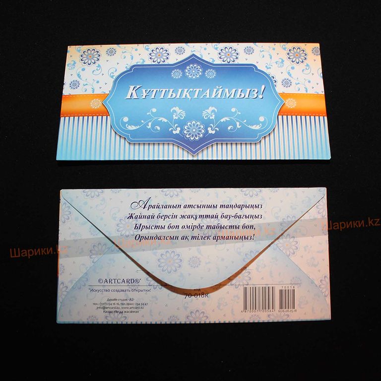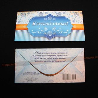 Конверт "ҚҰТТЫҚТАЙМЫЗ" с узорами